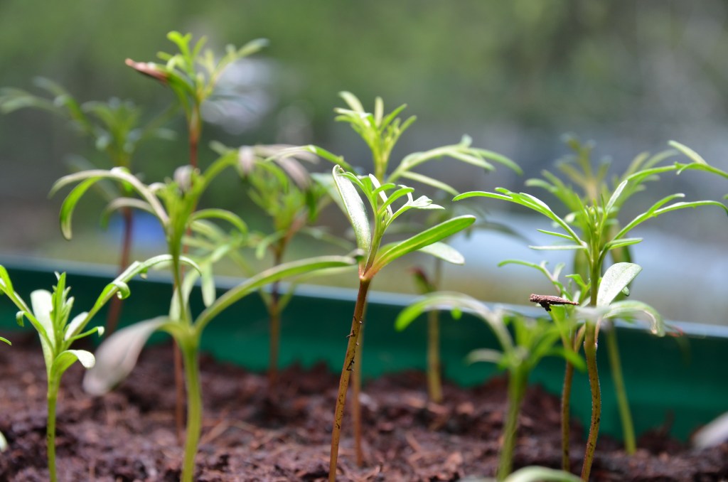 Da sowohl die Samen als auch die Keimlinge klein und zart sind, solltest du anfangs nicht mit der Gießkanne gießen, das würde alles ausschwemmen; nimm stattdessen eine Sprühflasche und besprühe die Oberfläche der Erde einmal täglich ganz sanft.