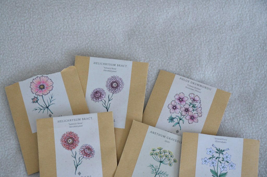 Achte beim Samenkauf darauf, dass du einjährige Sommerblumen aussuchst, also solche, die in diesem Jahr bereits blühen. Dazu gehören z.B. Schmuckkörbchen (Cosmos), Ringelblumen (Calendula), Strohblumen, Kornblumen oder Jungfer im Grünen (Nigella). Diese Blumen sind absolut unkompliziert und anfängertauglich.