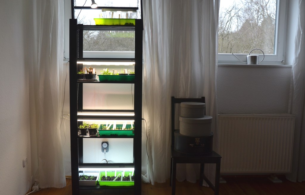 Wenn du mit wenigen Pflanzen/Sorten anfangen willst, reichen ein, zwei Fensterbänke oder ein einfaches Standregal an einem hellen Fenster oder mit Beleuchtung.