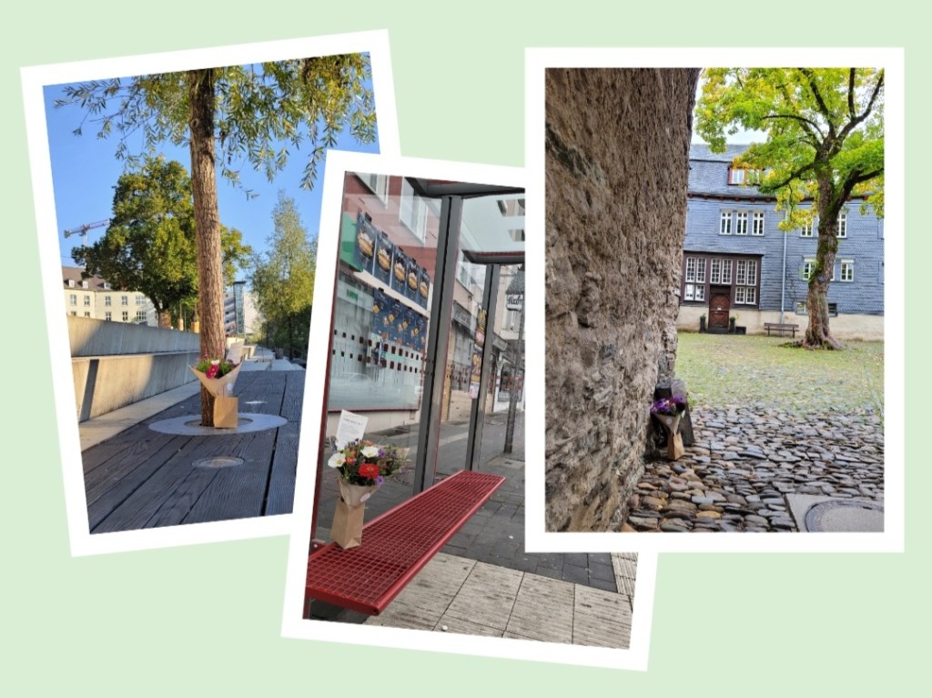 Inzwischen, am Ende der ersten Slowflocherwoche, kann ich sagen, dass es mir eine diebische Freude bereitet hat, schöne Orte in Siegen zu finden, an denen ich euch meine Überraschungssträuße zum Mitnehmen dalassen konnte und euch gleichzeitig die Idee der Slowflowers als nachhaltige Alternative zu konventionellen Schnittblumen ganz plastisch näherbringen konnte. Ich wünsche mir, dass alle Finder*innen happy mit ihrem Strauß waren.